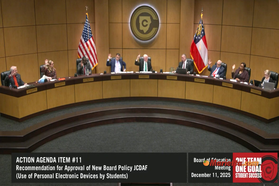 During Thursday’s 11/11/25 board meeting, Superintendent Chris Ragsdale noted that Cobb already had rules on the books for student devices, and those accounted for less than 0.02 percent of discipline cases. Still, state law now sets the bar, so the district is required to formalized the ban and follow the new mandate.