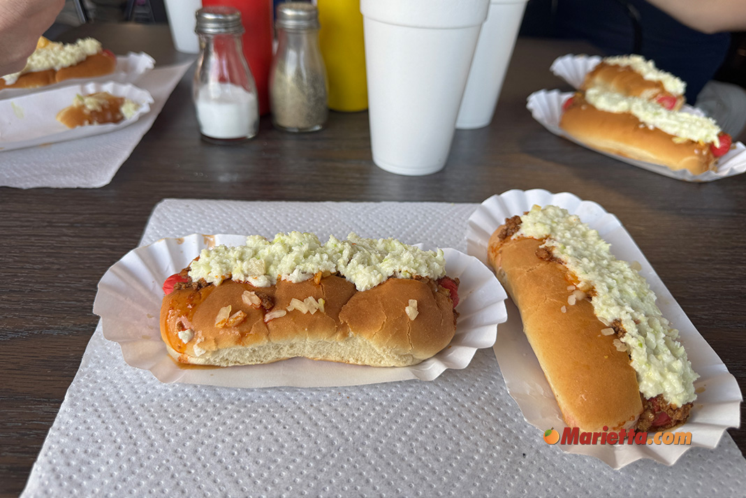 Brandi’s World Famous Hot Dogs is a slice of old-fashioned goodness, serving up Southern slaw dogs that have earned a reputation far beyond Marietta’s borders. These hot dogs come with chopped onions, yellow mustard, and a kick of spicy chili as the standard, but the real magic happens when you add a dollop of sweet coleslaw. If the idea of a chili-slaw dog sounds a bit unusual, don’t worry because after one bite, you’ll understand how the sweetness of the slaw perfectly balances the heat of the chili.
