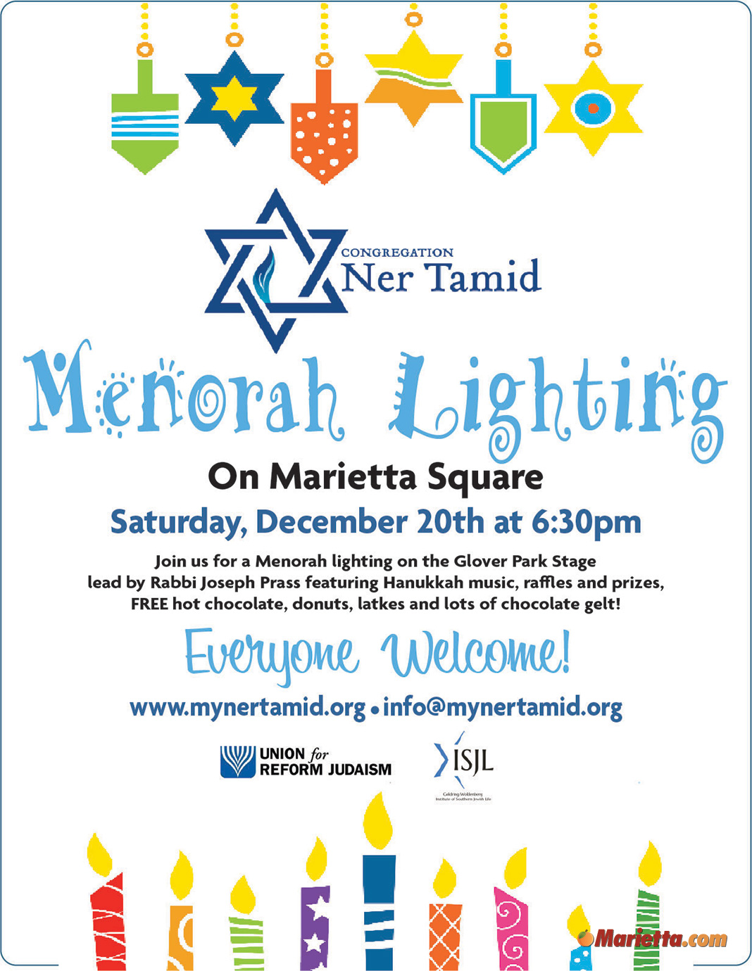 Celebrate Hanukkah with the annual Menorah Lighting at Marietta Square.  The joyous festival of Hanukkah is celebrated in a special way at Marietta Square, with the annual Menorah Lighting event.