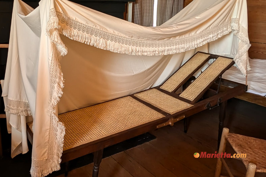 New to this year’s exhibit is a 19th-century embalming and cooling board. Used during the late 1800s, these portable tables became vital to undertakers during the Civil War as embalming gained popularity for preserving bodies during long transports. The Root House’s newly restored board offers visitors a fascinating window into the evolution of funeral practices.
